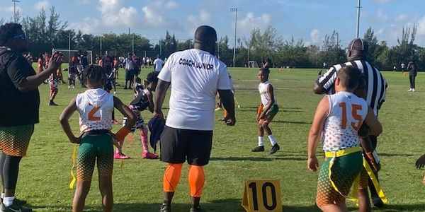 Coach "Sergeant" Junior leads the "UNTOUCHABLES 9U" flag football team to another victory. Currently #1 in the standings. MiamiEliteFlag Football League. Championship bound Untouchables!!!